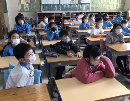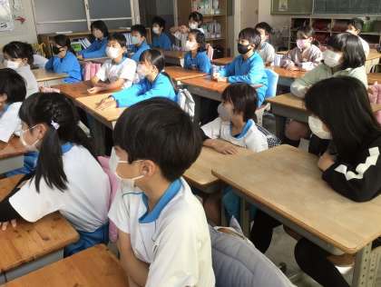 3組の様子です。こちらのクラスも真剣に聞いていました。