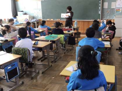 2組の読み聞かせの様子です。面白い内容の本を読んで頂きました。