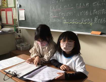 今朝の様子です。4組です。健康観察をしていました。