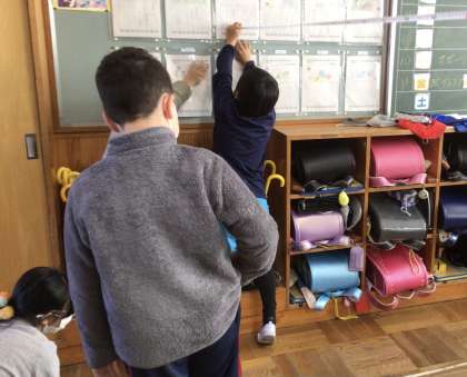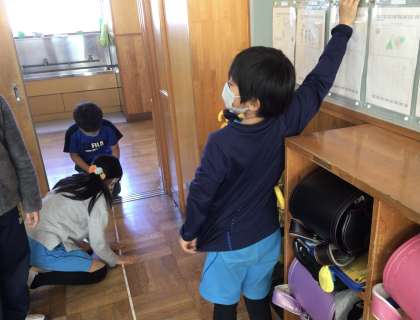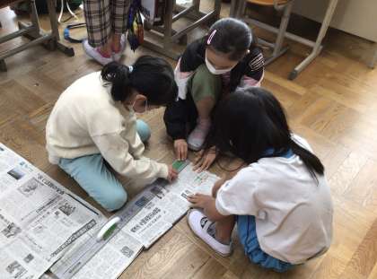 今日の授業では、新聞紙を広げて1平方メートルの大きさを体感したり、メジャーを使って教室のおおよその面積を測ったりしました。