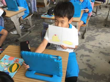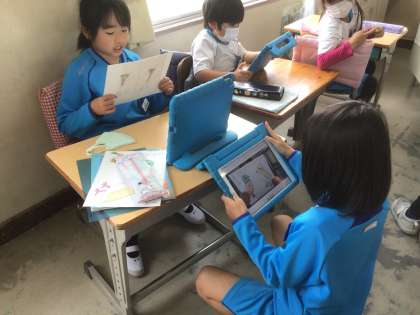 再び、動画撮影です。自分の考えた文を、自分で見て聞いて、確認です。
