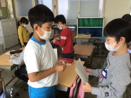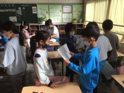 友だちに、自分で考えた文を伝えています。上手に伝わったかな?
