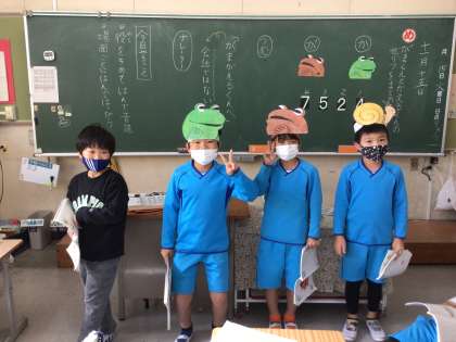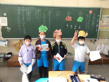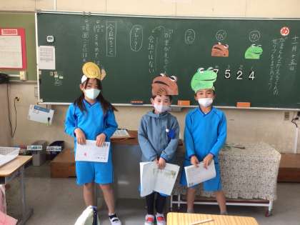役になりきり音読をしています。がまくん、かえるくんの気持ちをうまく表現できていました。