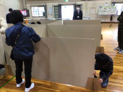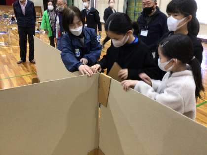 段ボール間仕切り体験を行いました。