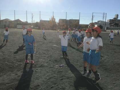 縄跳びを始めました。みんなで跳んだり、自分で跳んだり、久しぶりの縄跳びを楽しみました。