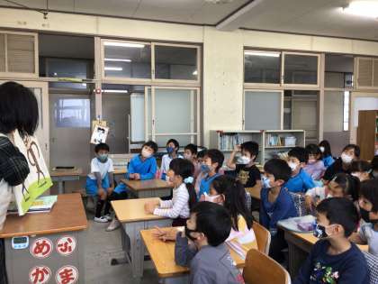 今日の読み聞かせは、国語科「ニャーゴ」に出てきた、タマが登場する大型絵本から始まりました。