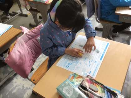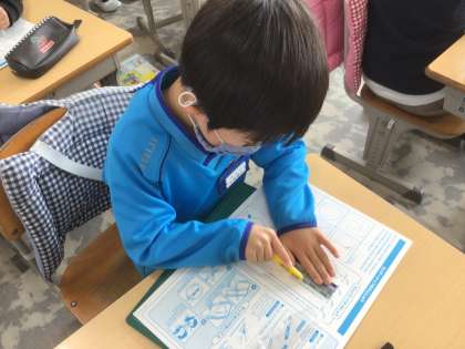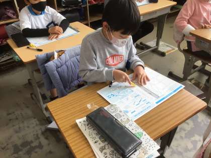 カッターナイフの使い方を、学習しました。正しい使い方を知り、初めての挑戦でした。ちょっと、ドキドキしていた様です。