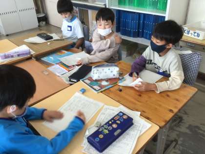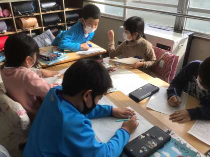 明日の校外学習に向けて、グループで見学内容の確認をしました。