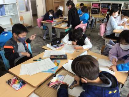 グループでの伝え合いが充実し、あっという間に時間がきてしまいました。すると、「もうちょっと時間ください」と言う声が上がり、学習を深めたり友だちとの学び合いを楽しみました。