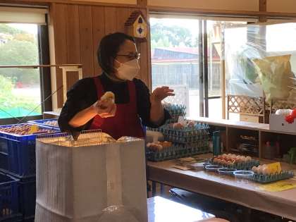 「村瀬養鶏場」さんに見学に行きました。ニワトリさんのことやひよこさん、たまごのことなど、ていねいにおしえてくださいました。