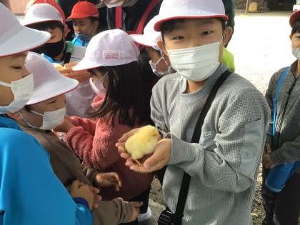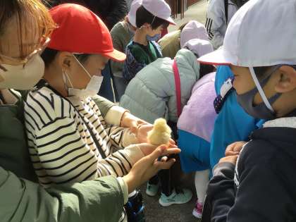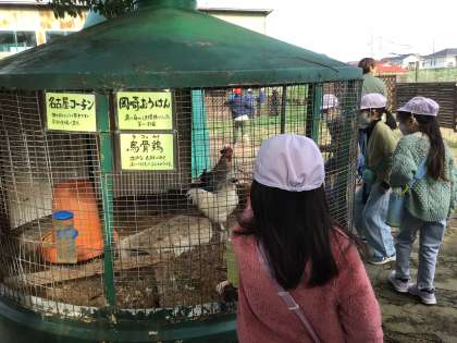 ニワトリさんが、外のおりにいました。なんと、ヒヨコさんは、わざわざ見せてくださるために、準備をしてくださいました。みんな、大喜びでした。