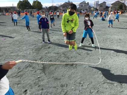 今日の長放課です。なわとBinGoにチャレンジしています。できた技のビンゴカードのマスに色をぬります。