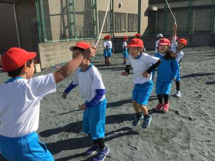 みんなで入って、長縄跳びを楽しみました。とっても、笑顔です!