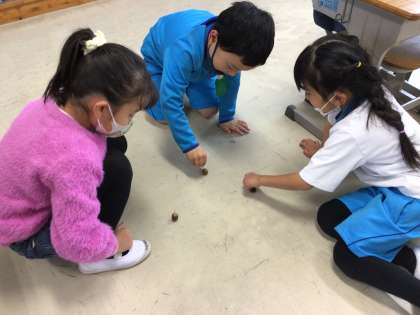 どんぐりごまを作りました。