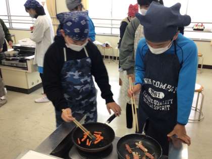 コロナ禍でも調理実習ができることに喜びを感じている子が多いようです。