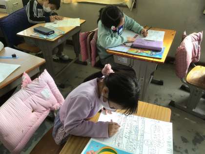 校外学習で学んだことを、自分でまとめています。グループでまとめるときと、自分でまとめるときの両方に取り組んでいます。どんなまとめになるかな?