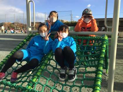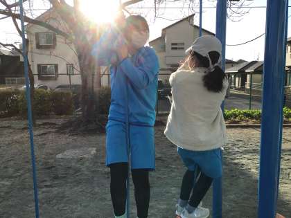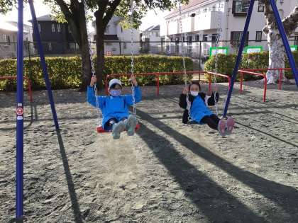 完成したばかりの新しい遊具で遊びました。