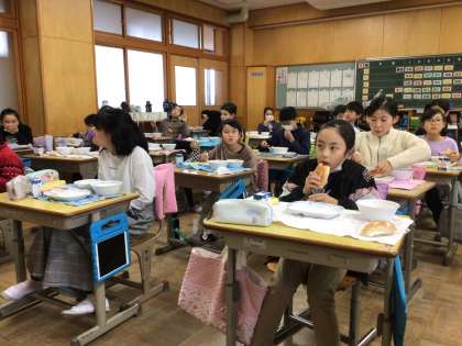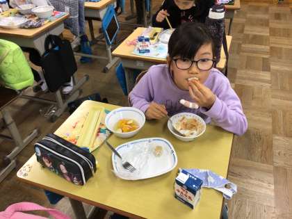 この日のメニューは、子どもたちに大人気の米粉パンでした。