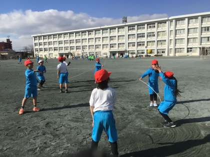 長縄で、回す人も跳ぶ人も、みんなで同じ思いで跳びました。だから、喜びも楽しさも倍になっているね!