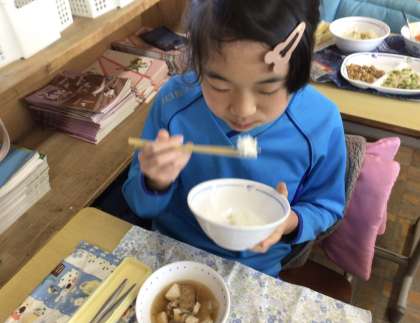 この日のメニューの一番人気はけんちん汁でした。完食できました。