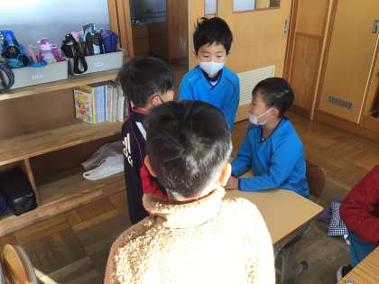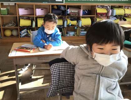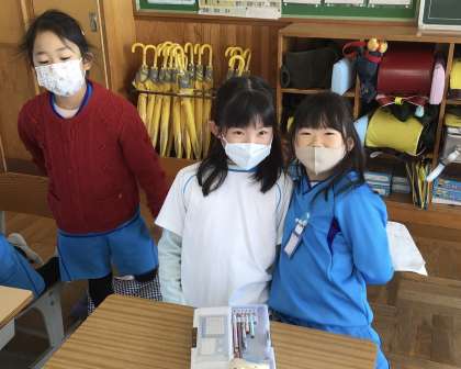 今朝の様子です。教室で友だちと仲良く過ごしています。