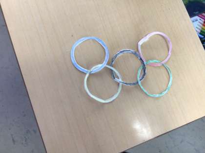 オリンピックのマークをコンパスを使って作りました。 どう組み合わせればいいのか悩んでいましたがなんとか完成!