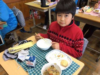 今日のメニューは、肉じゃが、豆腐しんじょ、ノリず和え、ご飯、牛乳でした。