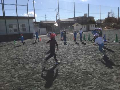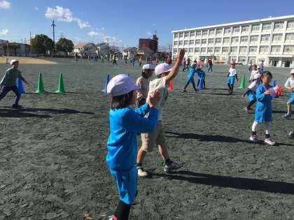 今日は、冬休み前の学校最後の日!みんなで、楽しく遊びました。バナナおにごっこです。