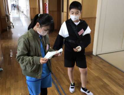 ボールペンを使った3つの遊びを考えていました。進んで下の学年の子に優しく声をかけていました。