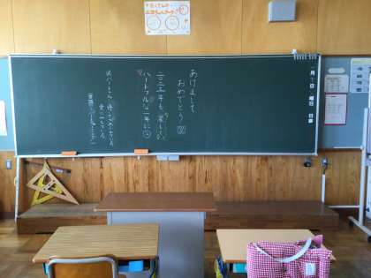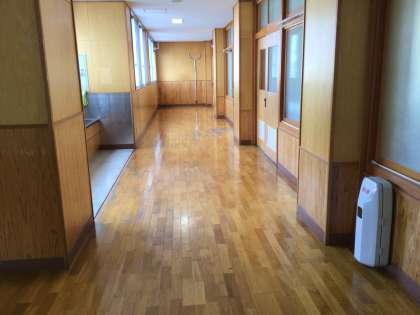 1・2組の教室です。廊下は、ワックスがかかっています。とても綺麗です。