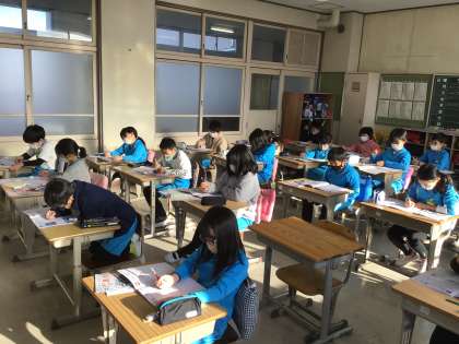 学力テストに向けて問題集に取り組んでいます。 集中して取り組んでいます。