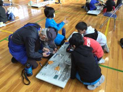 ものづくりサポートセンターから竹とんぼ作りの講師さんをお招きし、竹とんぼ作りを行いました。