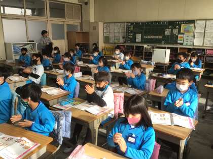 曲に合わせて、リズム打ちです。とってもよくそろっていました。リズム感がいいのかな?