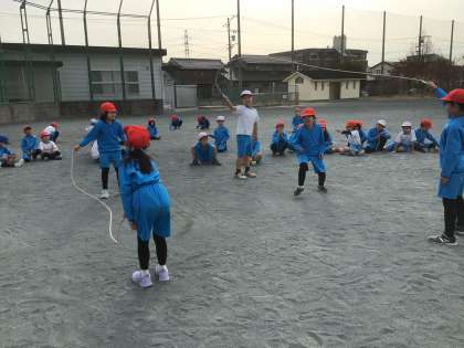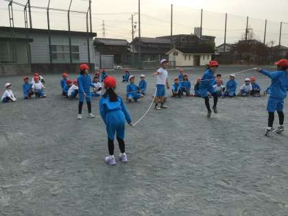 長縄を跳びました。今日は、2本の縄で連続跳びです。