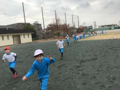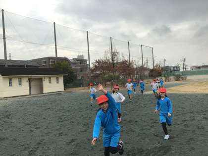今日の体育では、少し寒かったので始めに準備運動をした後、走りました。2回目は、縄跳びを使って走りました。