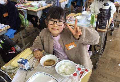 この日は、子どもたちの大好きな鶏の唐揚げがメニューにありました。毎日、笑顔で食べています。