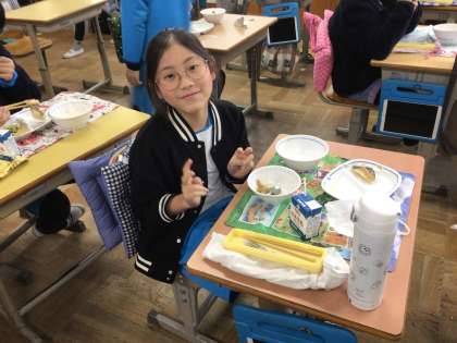 校外学習から戻ってきて、とてもお腹が空いたと言っていました。
