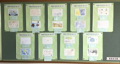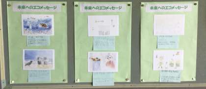 「未来へのエコメッセージ」というテーマで絵を描き、作品を委員会掲示板に掲示しました。
