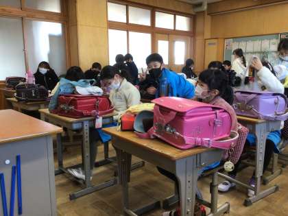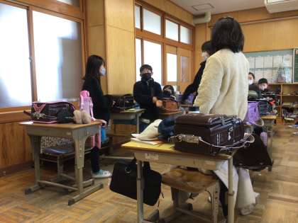 帰りの会の様子です。友だちの良いところを発表しています。