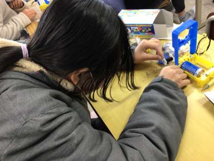 理科では、電磁石の実験をしています。電池の本数の違いで、磁力の強さが変わるのかを実験しました。