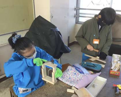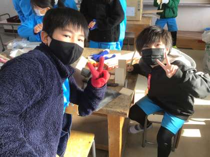 木材をノコギリやカナヅチ、紙やすりなどを使って自分の思い描く形を作っていました。