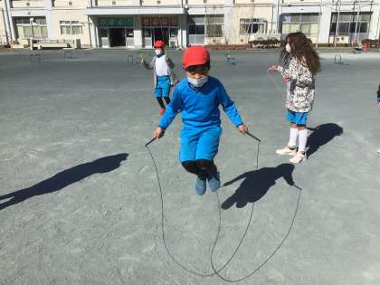 今日は、縄跳びの班とハードル走の班に分かれて授業を行いました。縄跳びの二重跳びを披露してくれました。