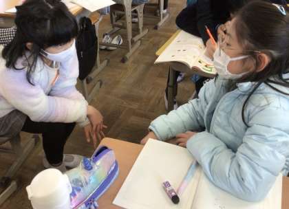 今日は、帯分数の学習を行いました。仮分数を帯分数に直す仕方を考えて、隣の席の友達と話し合いました。