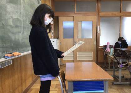 今日の帰りの会です。友達の良いところを発表しています。