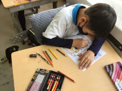 明日の節分に合わせて、おにを描きました。明日、持ち帰る予定です。お楽しみに!