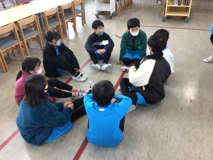 わくわく班活動に向けて準備を行っています。実際に遊びをし合い、より良いものへと高め合っています。