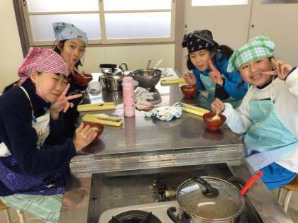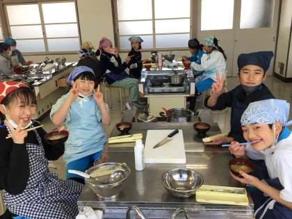 味噌汁調理実習の様子です。おいしくできました!