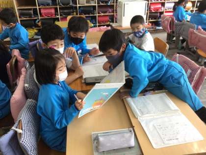 説明の仕方を、考えています。みんなの考えを伝え合い、分かりやすくなる工夫を重ねています。