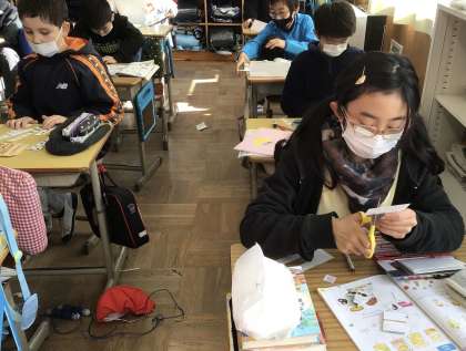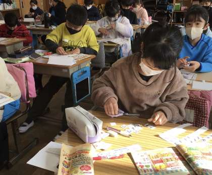 今日は、オリジナルピザをカードを使って作りました。いろいろな具材を使って考えました。