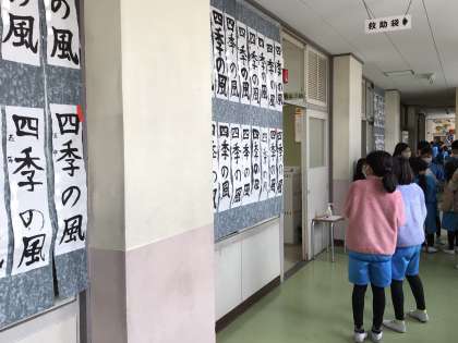 書き初め展が始まっています。 廊下を通るたびに、作品を見上げる子が多くいます。